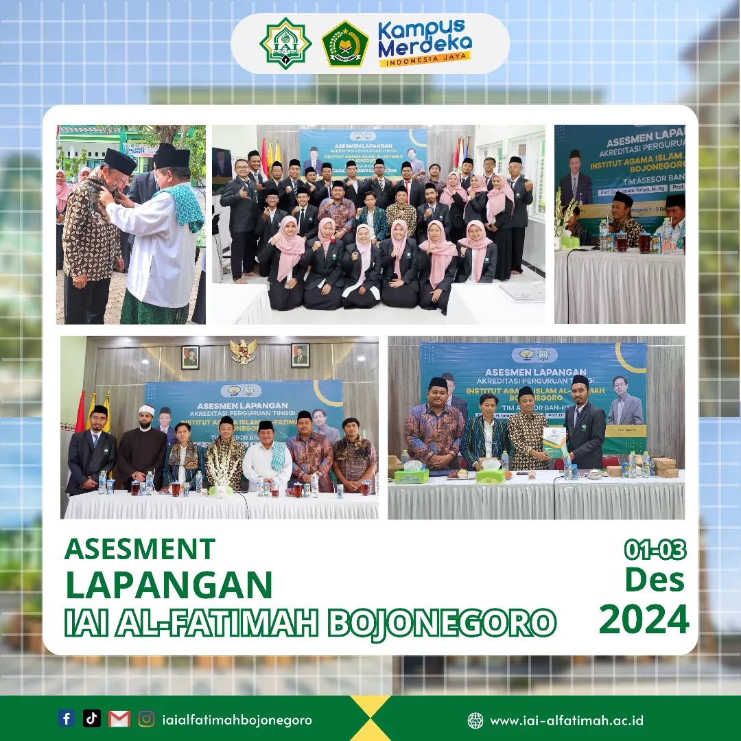 Bojonegoro, 1–3 Desember 2024 — Institut Agama Islam (IAI) Al-Fatimah Bojonegoro melaksanakan kegiatan Asesmen Lapangan dalam rangka akreditasi perguruan tinggi oleh tim asesor BAN-PT. Kegiatan ini menjadi bagian penting dalam upaya peningkatan mutu pendidikan dan penjaminan kualitas lembaga.